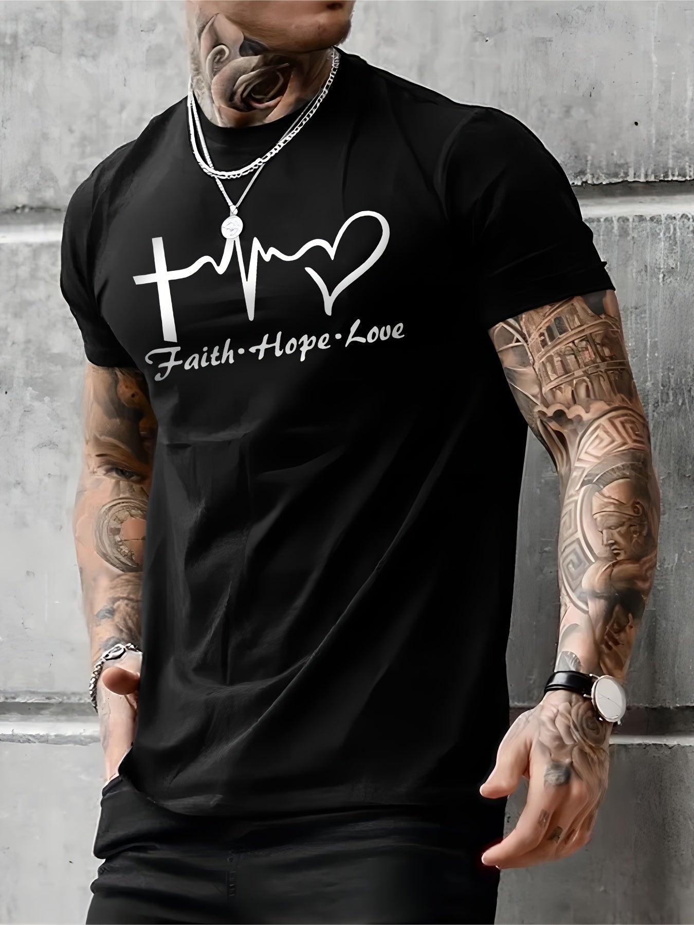 Men's Casual Street Style Slightly Stretched Round Neck T-shirt, Summer Style
